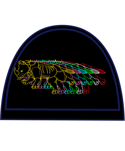a rhinoceros rampant sa stroked cyan bendwise rotated