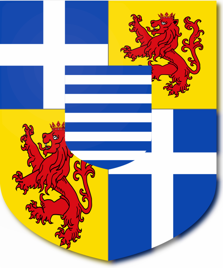 over the quarterings a heater shape escutcheon barry
