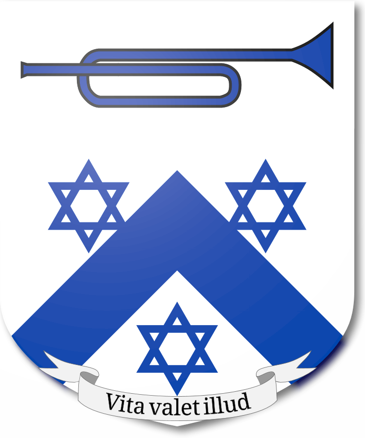 argent  a chevron  azure  in nombril a trumpet  azure